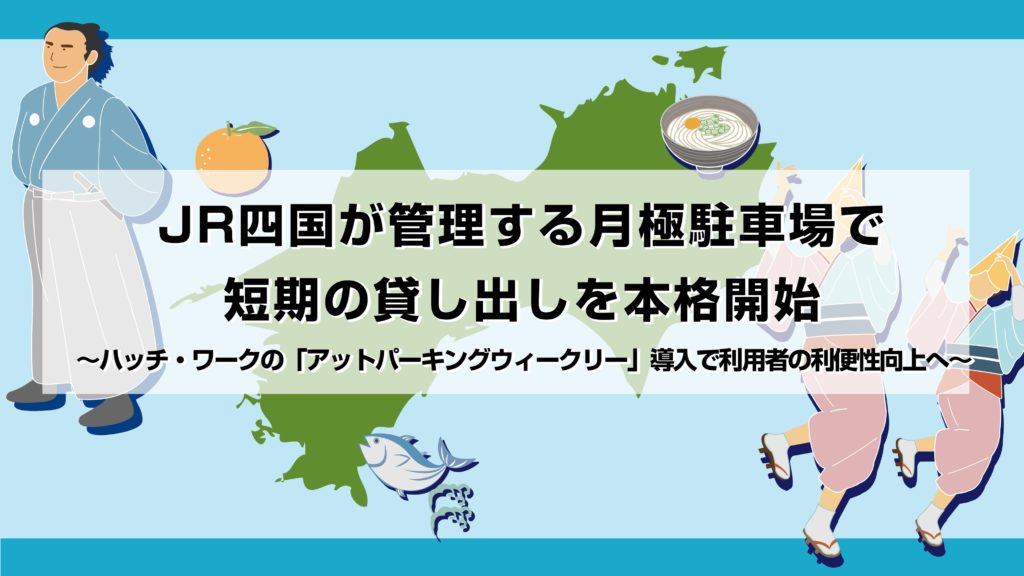 株式会社ハッチ・ワーク(本社:東京都港区、代表取締役社長:増田知平、以下ハッチ・ワーク、証券コード:148A)は、四国旅客鉄道株式会社(本社:香川県高松市、代表取締役社長:四之宮和幸、以下JR四国)が管理する月極駐車場を対象に、月極駐車場のシェアリングサービス「アットパーキングウィークリー」を導入しました。