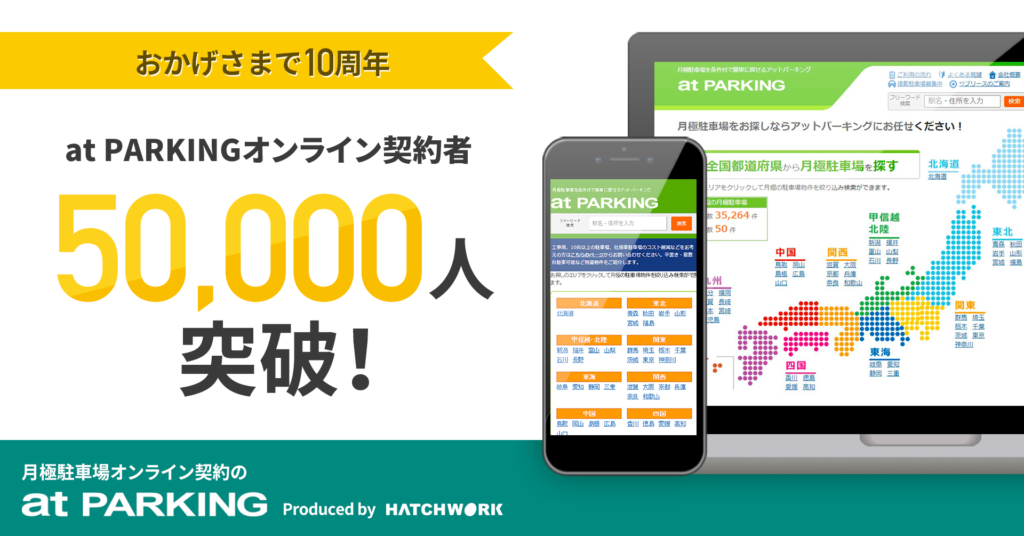 オンライン契約者数50,000人を突破 ハッチ・ワークの月極駐車場検索ポータルサイト「at PARKING」